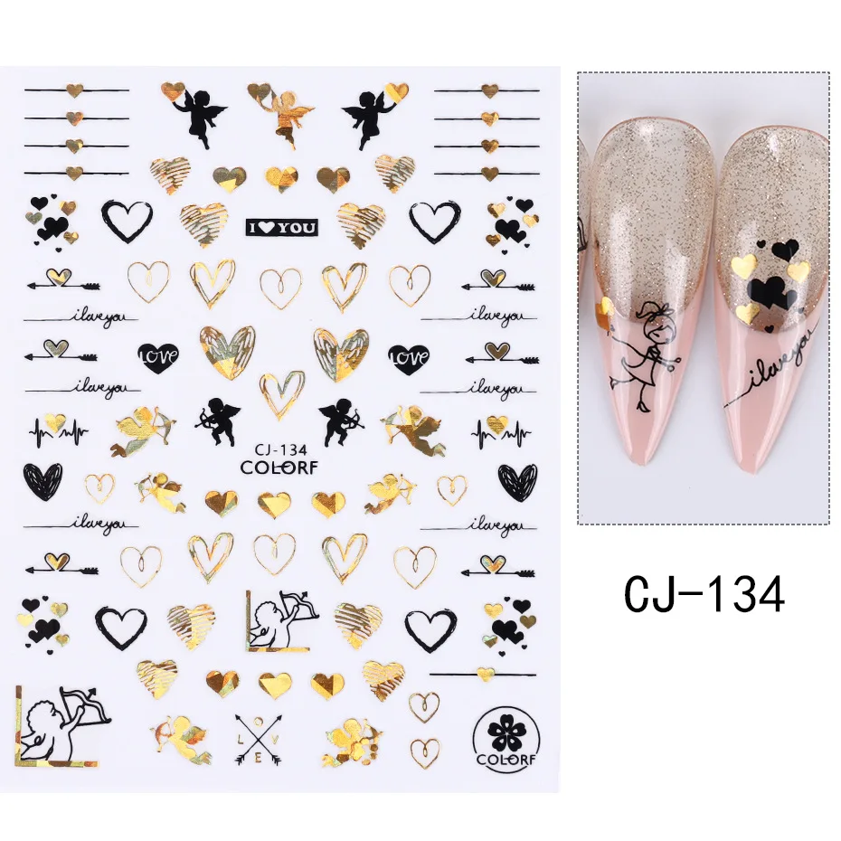 1PCS Black Gold Love Heart Letters 3D Nail Stickers Valentine’s Day Nail Art Decoration Cartoon Bear Cupid Stickers For Nails