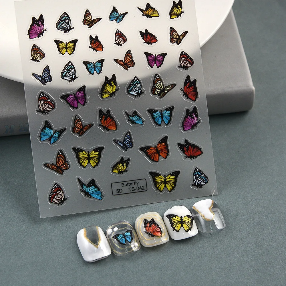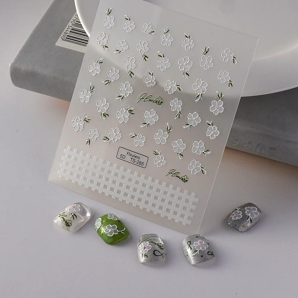 1PCS Black White Bow Butterfly 5D Nail Stickers Nail Art Decoration Relief Disney Cartoon Flower Nail Art Stickers Nail Supplies