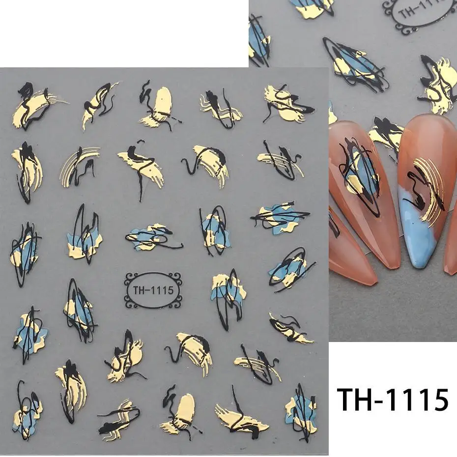 1PCS Black White Butterfly Laser Nail Stickers Y2K Nail Art Decoration Abstract Lines Bronzing Flowers Stickers For Nails