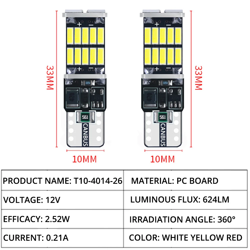 1X Car LED T10 26SMD Trunk Lamp CANBUS Reversing Brake Light Turn Signal 4014 Rogue Reversing Lights Auto Bulb Reading Light