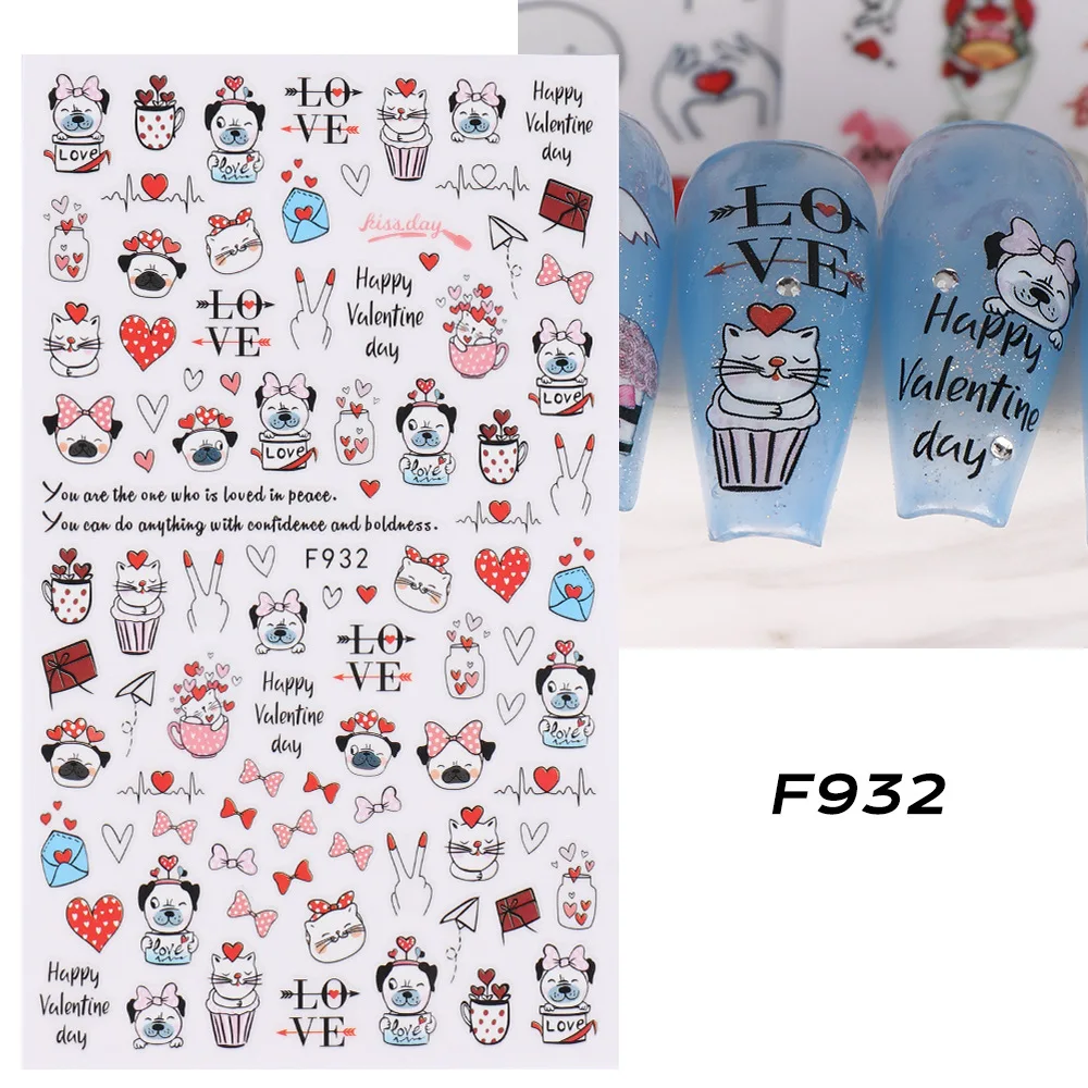 1PCS Cartoon Heart Little Boy 3D Stickers Nail Supplies Flowers Butterfly Nail Art Decals Valentine’s Day Nail Stickers