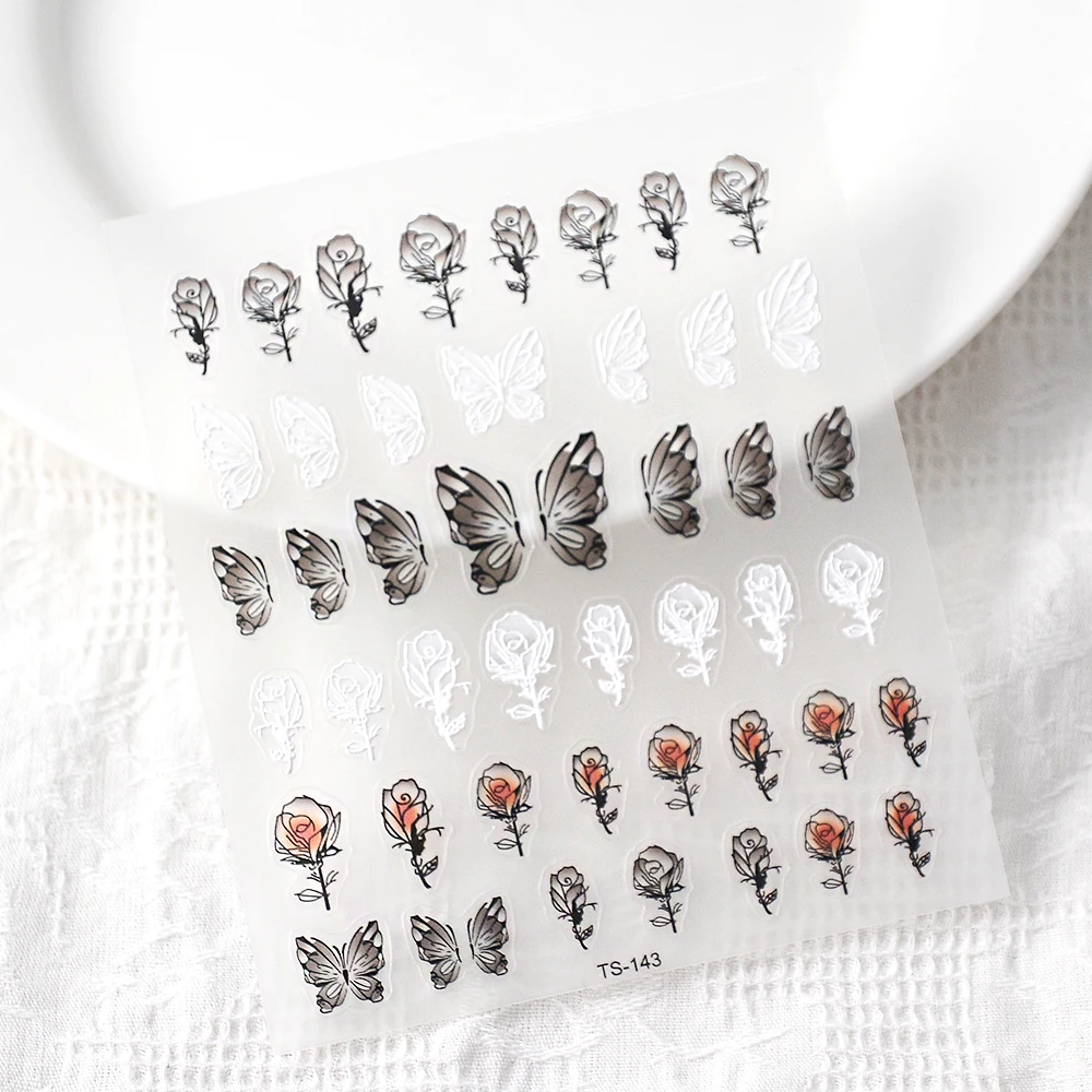 1PCS Embossed 5D Nail Stickers Bohemian Pattern Stickers Nail Art Supplies Heart Butterfly Sticker Nail Art Accessories