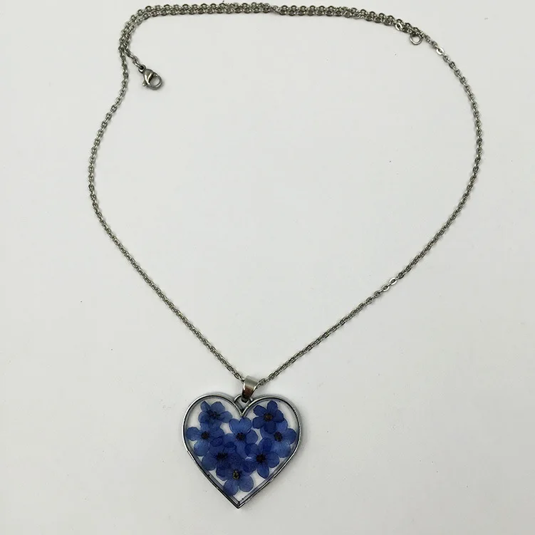 1Pcs Heart Acrylic Dried Preserved Fresh Flower Lovers Charms Eternal Eternal Petal Specimens Resin Pendant Alloy Chain Necklace