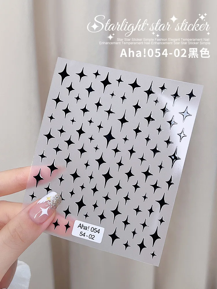 1PCS Laser Starburst Star Adhesive Nail Sticker 3D Nail Art Decoration Flashing Silver Flame Butterfly Nail Decal Press on Nails