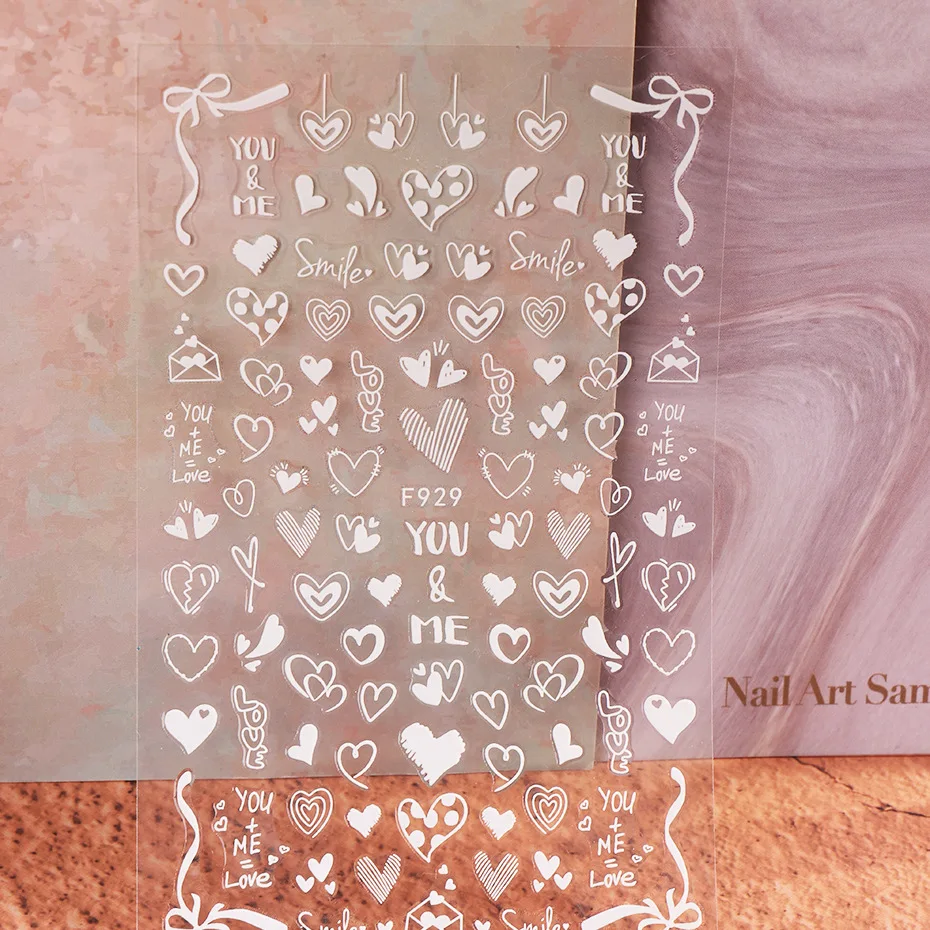 1PCS New Black White Love Heart English Alphabet Nail Art Sticker Nail Decoration Decal DIY Valentine’s Day 3D Adhesive Stickers
