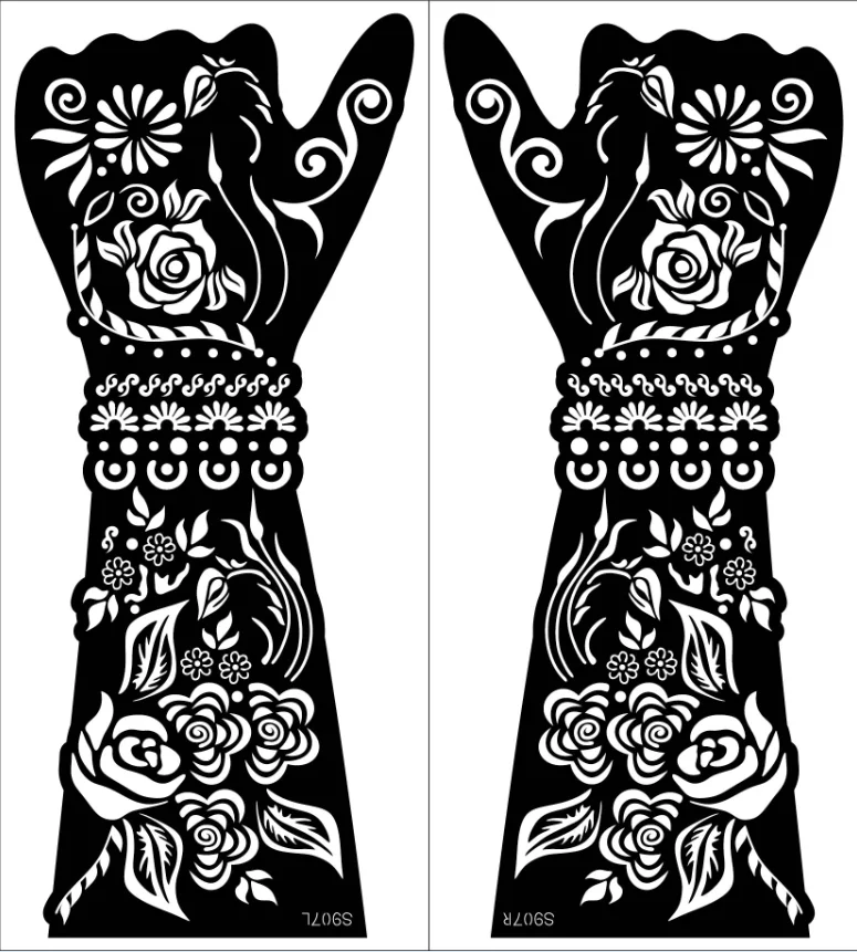 2 sheet Large Henna Hand Tattoo Stencils Women Girls Hand Finger Body Paint Henna Tattoo Templates Stencil DIY Indian Style