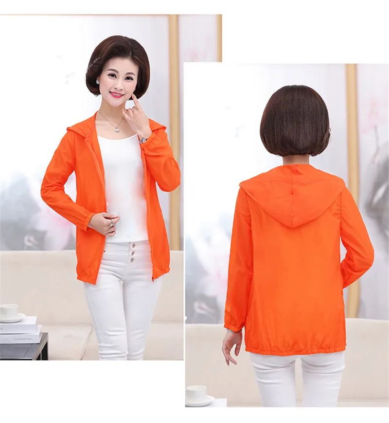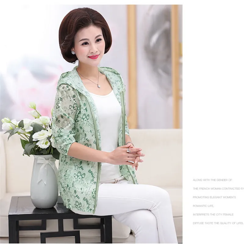 2019 Spring Middle Aged Women Jacket Fashion Hooded Print Sun Protection Clothing Female Loose Coat Zipper Windbreaker Tops 1117