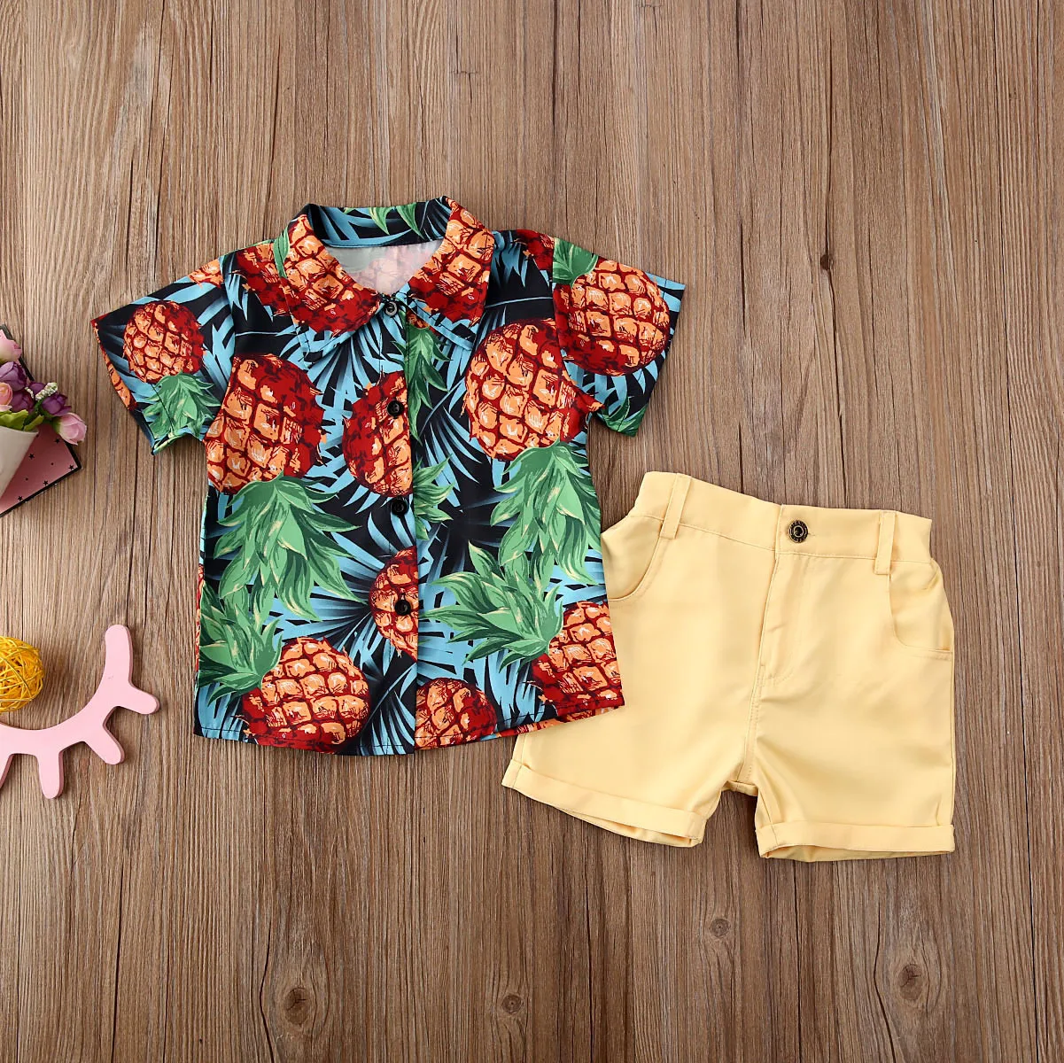 2020 Infant Kids Boys Clothes Sets Pineapple Print Short Sleeve Shirts Tops+Shorts 2pcs Beach Outfits