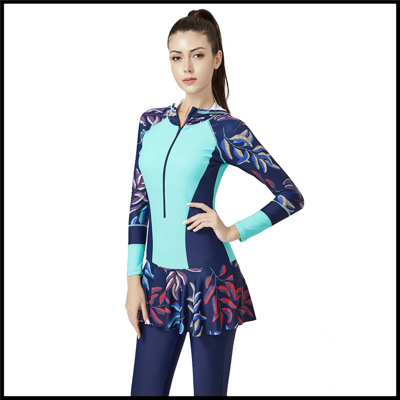 2020 Professional Women One Piece Skirt Sport Swimsuit L-6XL Plus Size Long Sleeve Bodysuit Long Pants Surf suit With Zipper Cap