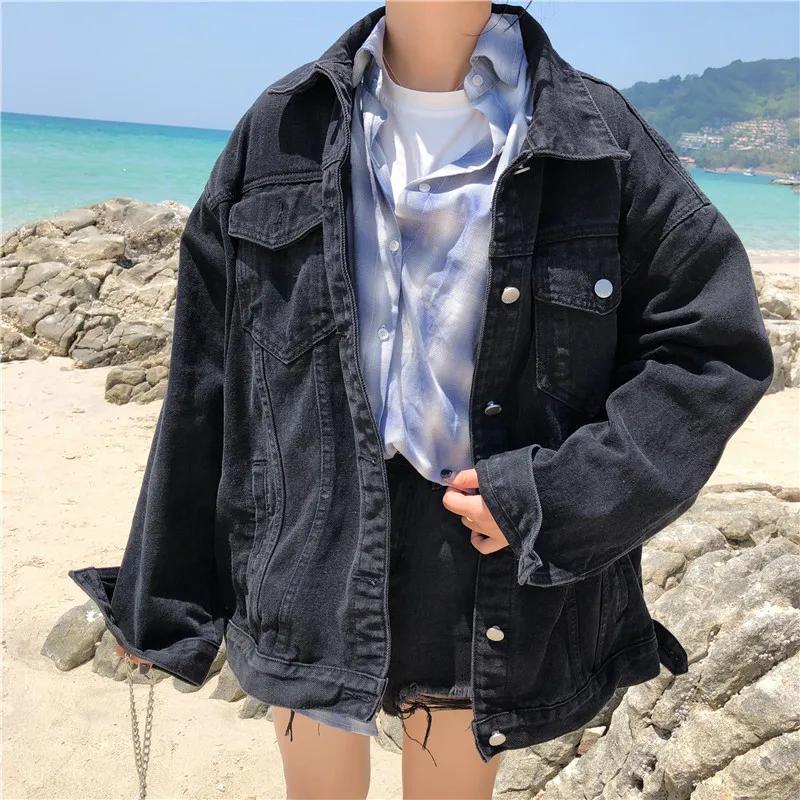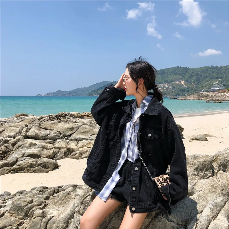 2020 Spring New Black Denim Coat Female Loose Vintage Jeans Jacket-Music of The Tide Womens Jackets