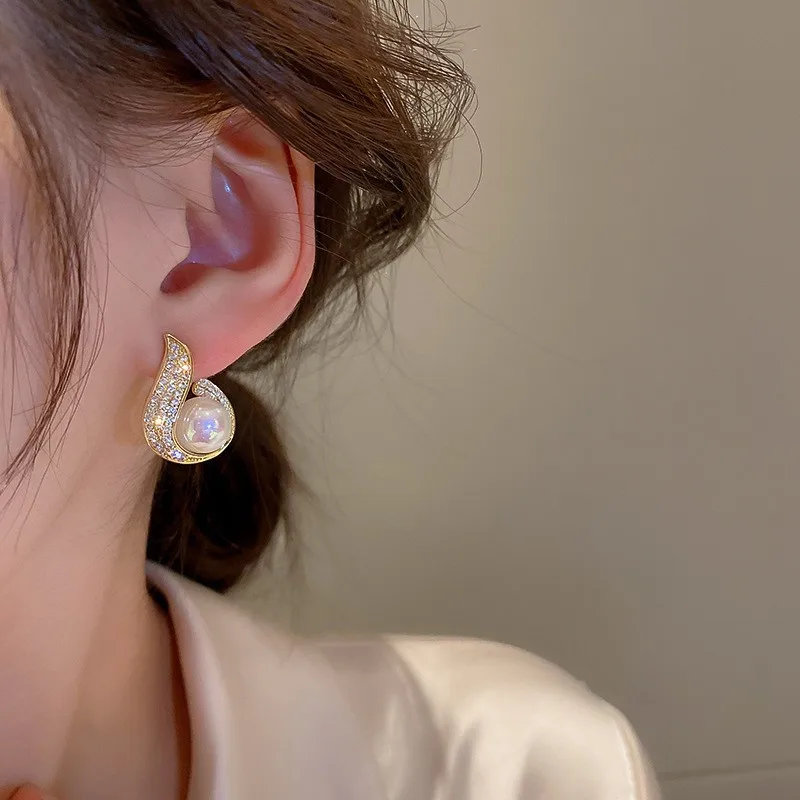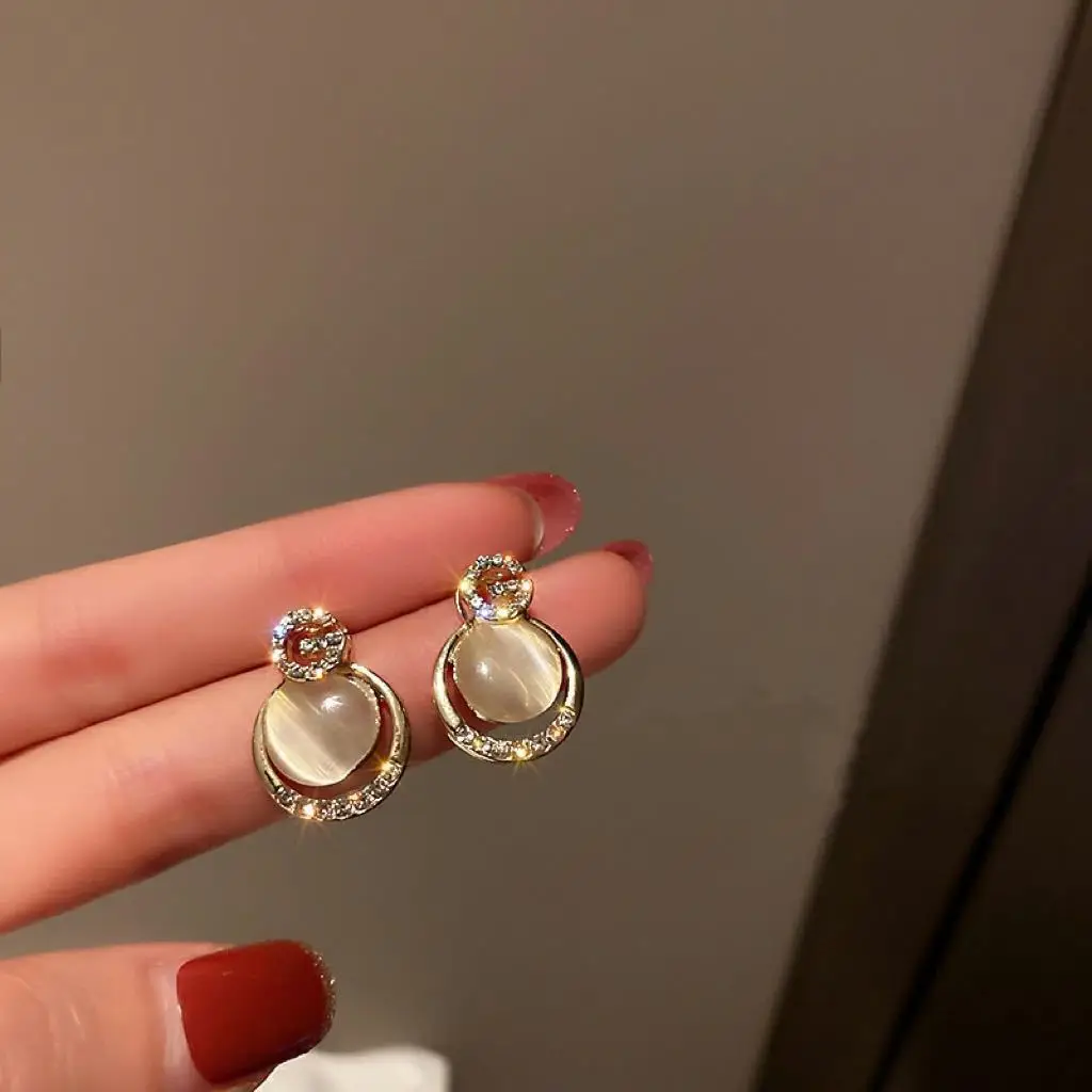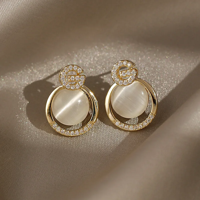 2022 New Inlaid Rhinestone Opal G-Letter Stud Earrings Women’s Personality Fashion Simple Earrings Wedding Jewelry Birthday Gift