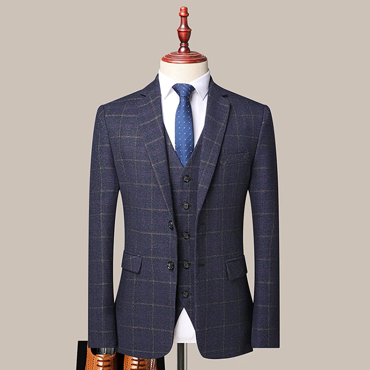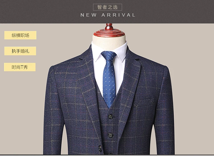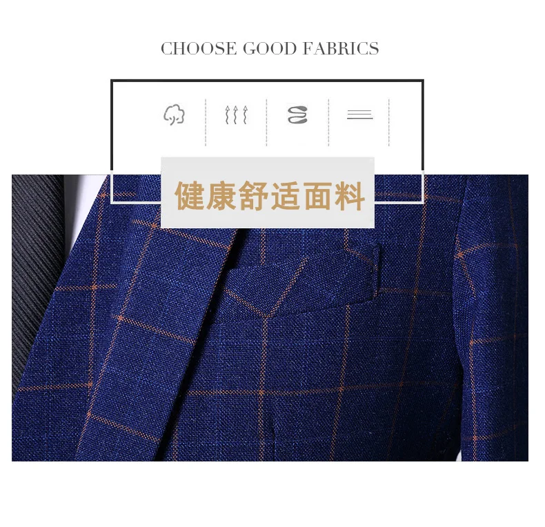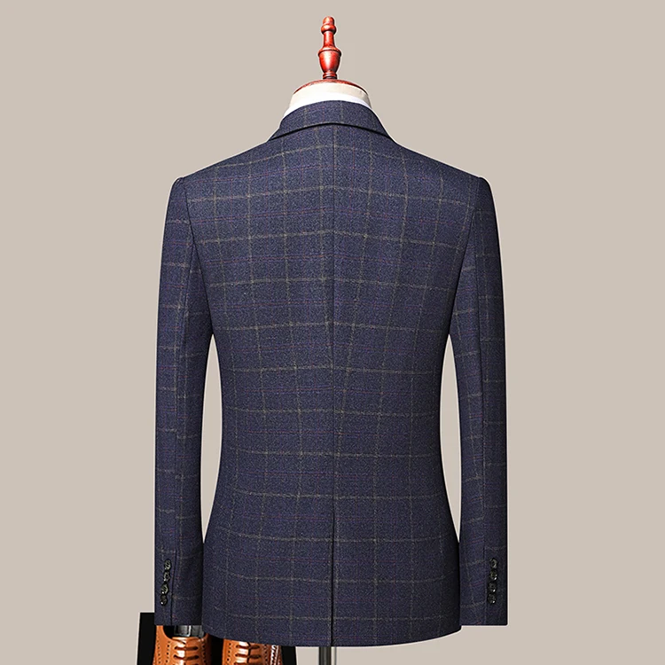 2022 Spring Autumn New Fashion Blazers Sets Pants Vest Men’s Suits / Casual Business Groom Plaid 3 Piece Jacket Coat Trousers