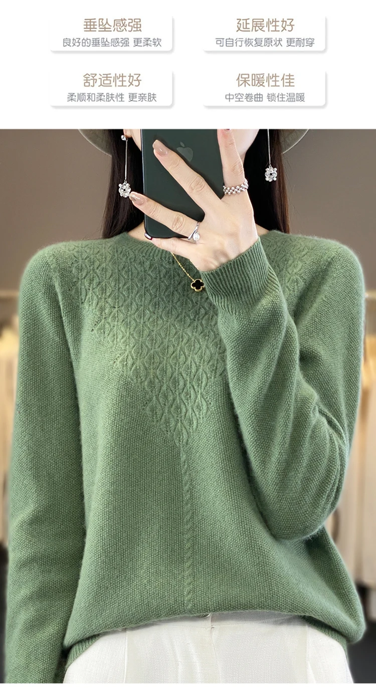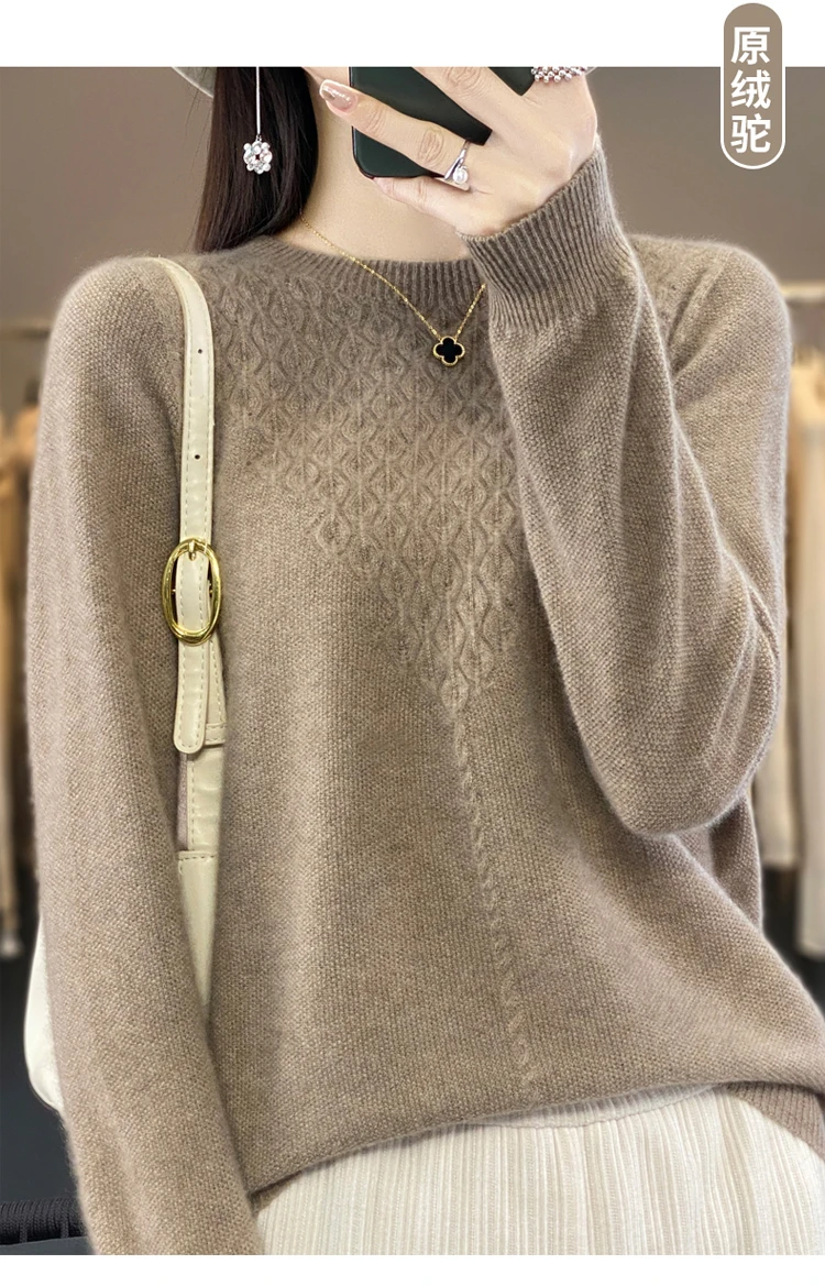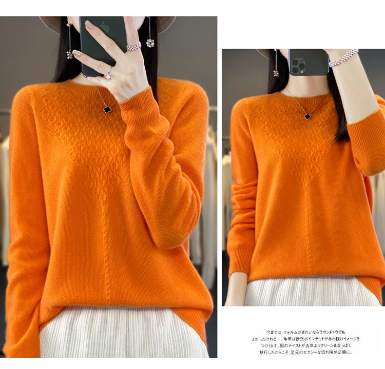 2023 Autumn/Winter New Women’s Sweaters 100% Pure Wool O-Neck Long Sleeve Knitted Pullover Warm Underlay Women’s Top