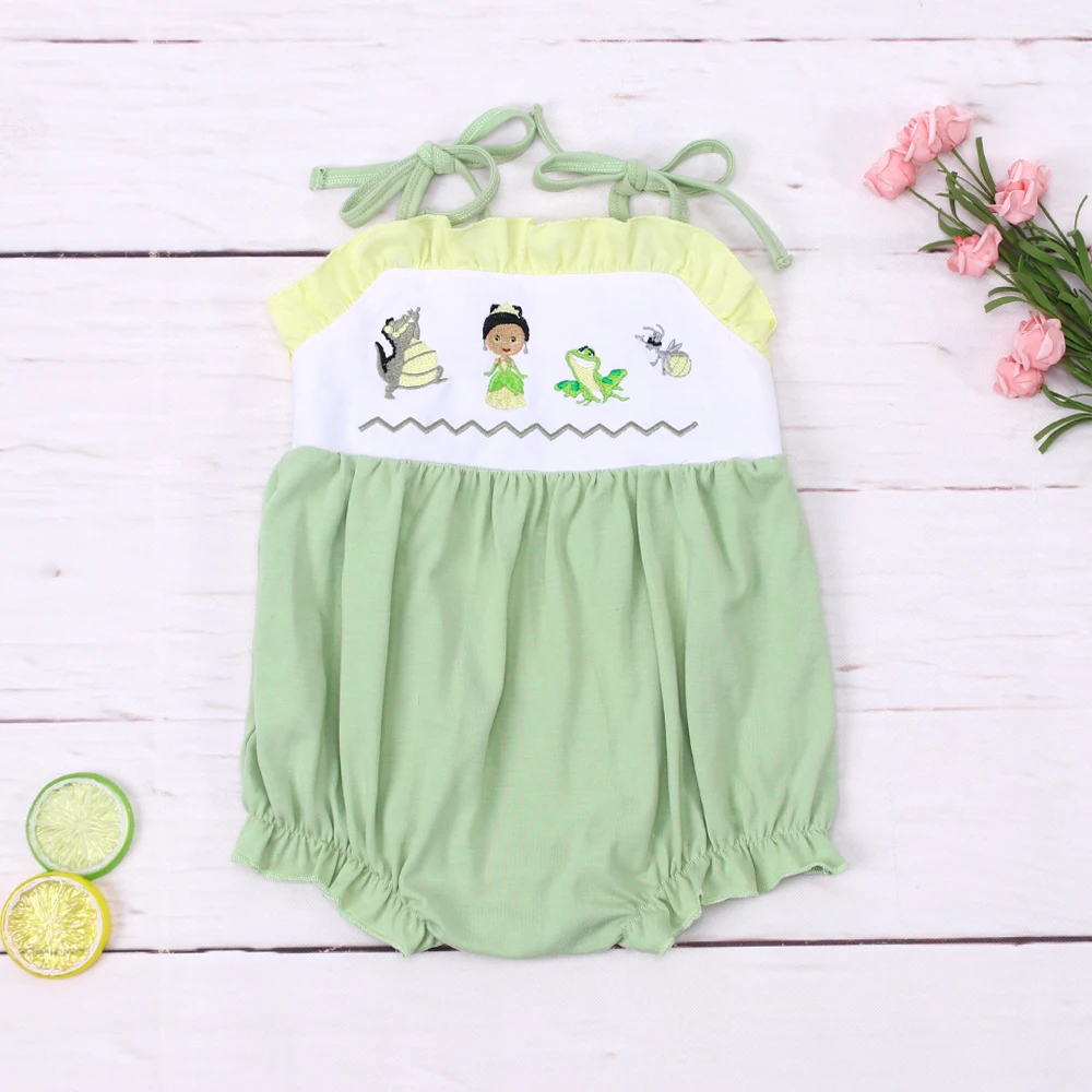 2023 Fashion New Summer Green Stripe Sleeveless Baby Girl Jumpsuit Animal Embroidery Green Bodysuit One-Piece Clothes