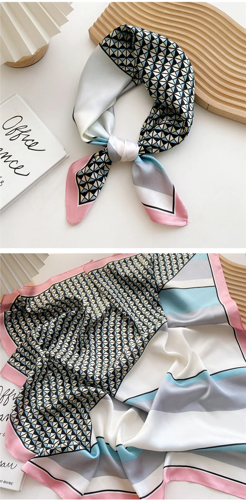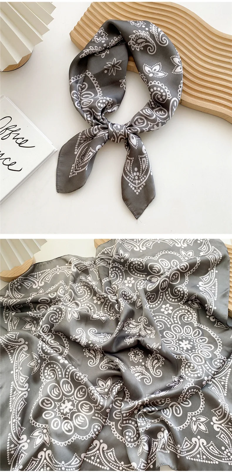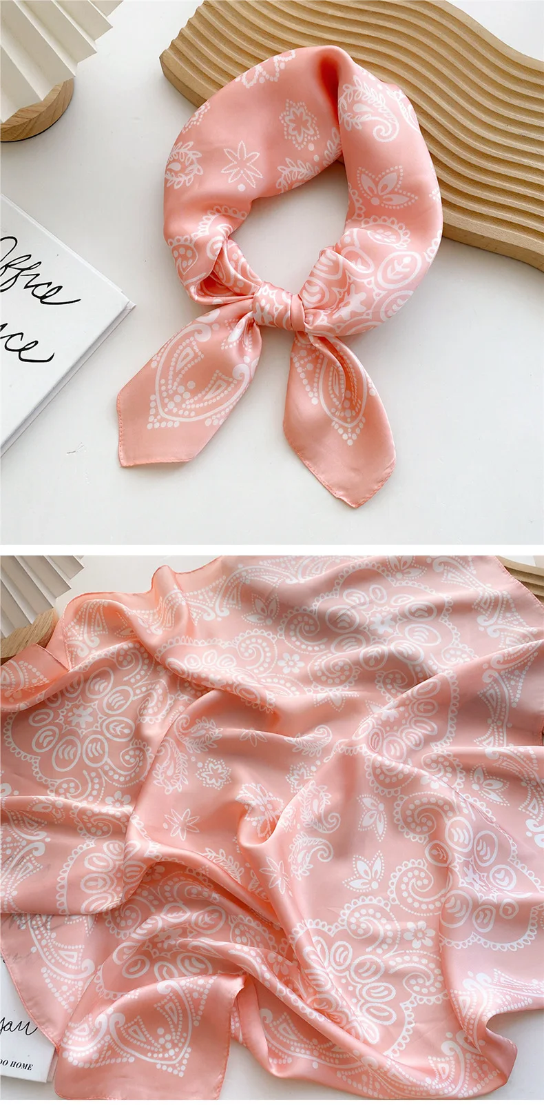 2023 New 70*70cm Silk Satin Hair Scarf Women Handkerchief Printed Female Square Head Bandana Small Neck Muffler Hijab Lady Girl