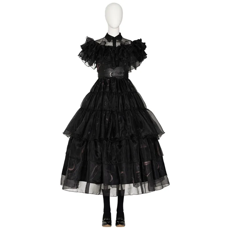 2023 New CosDaddy Wednesday Adams Cosplay Costume Adult Women Girls Black Dress Halloween Costume