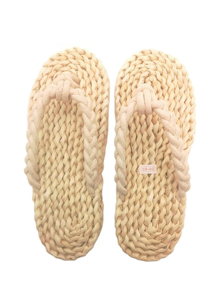 2023 New Hand-Woven Straw Sandals Breathable Function Natural Environmental Protection Men’S And Women’S Indoor Flip-Flops