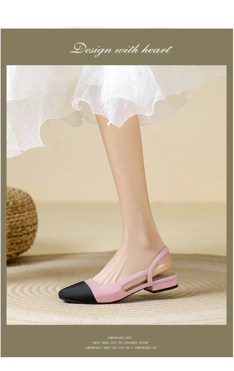 2023 New Pointed Toe Sandals Fashion Low&High Square Heels Flat Shoes Chaussure Slingback Sandals