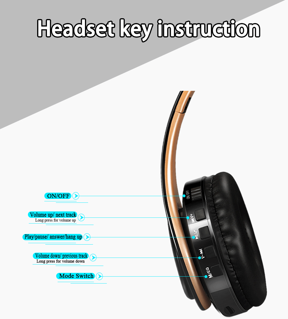 a.Turn on bluetooth on mobile phone,press headphone’s ON/OFF key and you will see the blue light blinking and get ready to pair, search and pair until connected.