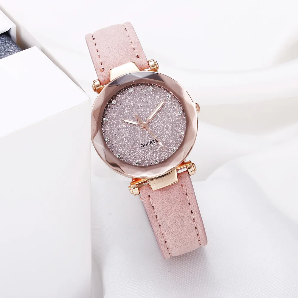 2023 Starry Sky Women Watch Set 2Pcs Bracelet Ladies Wristwatch Pink Female Girls Clock Fashion Leather Simple Watches montre