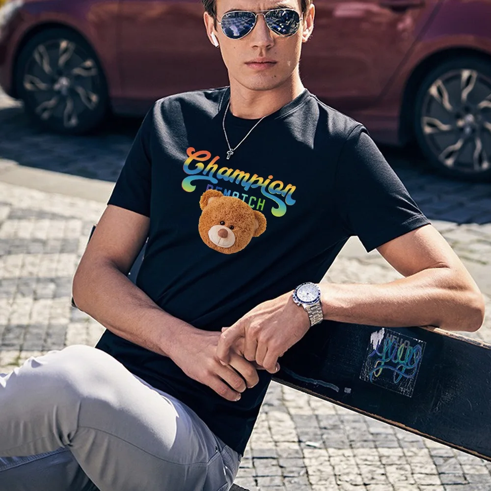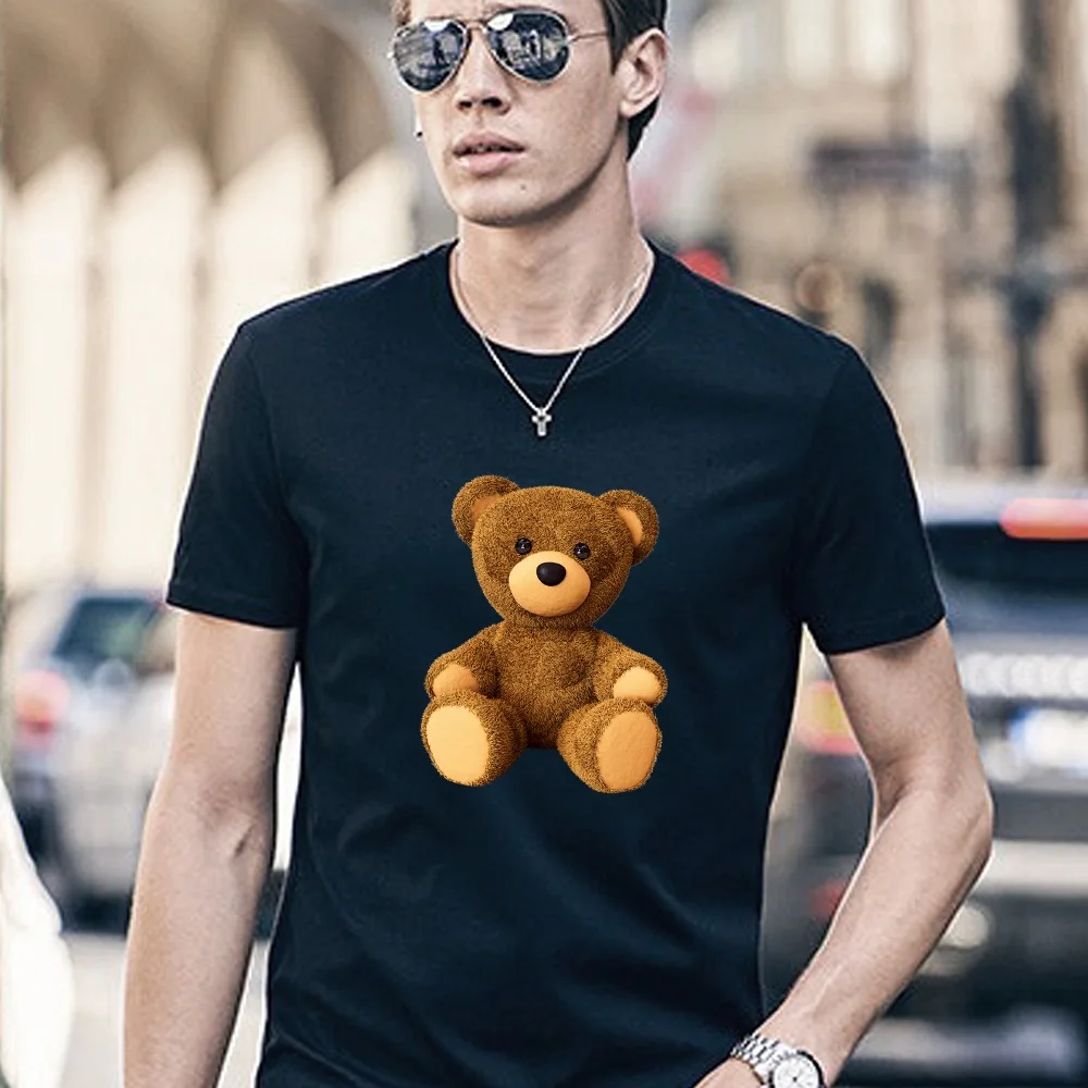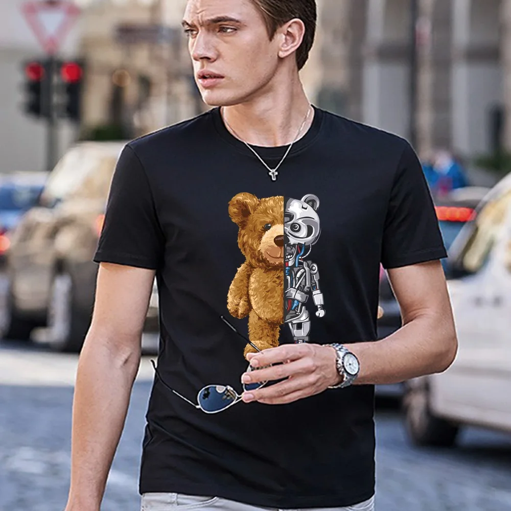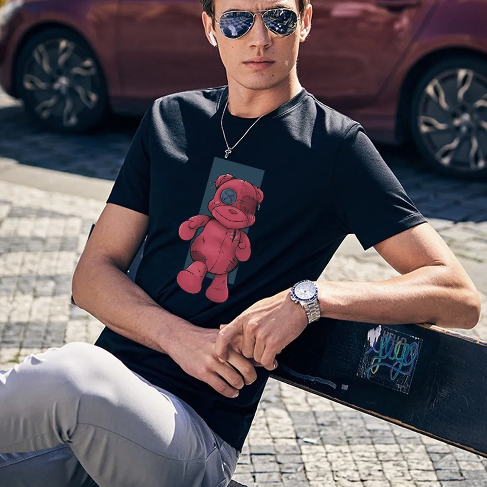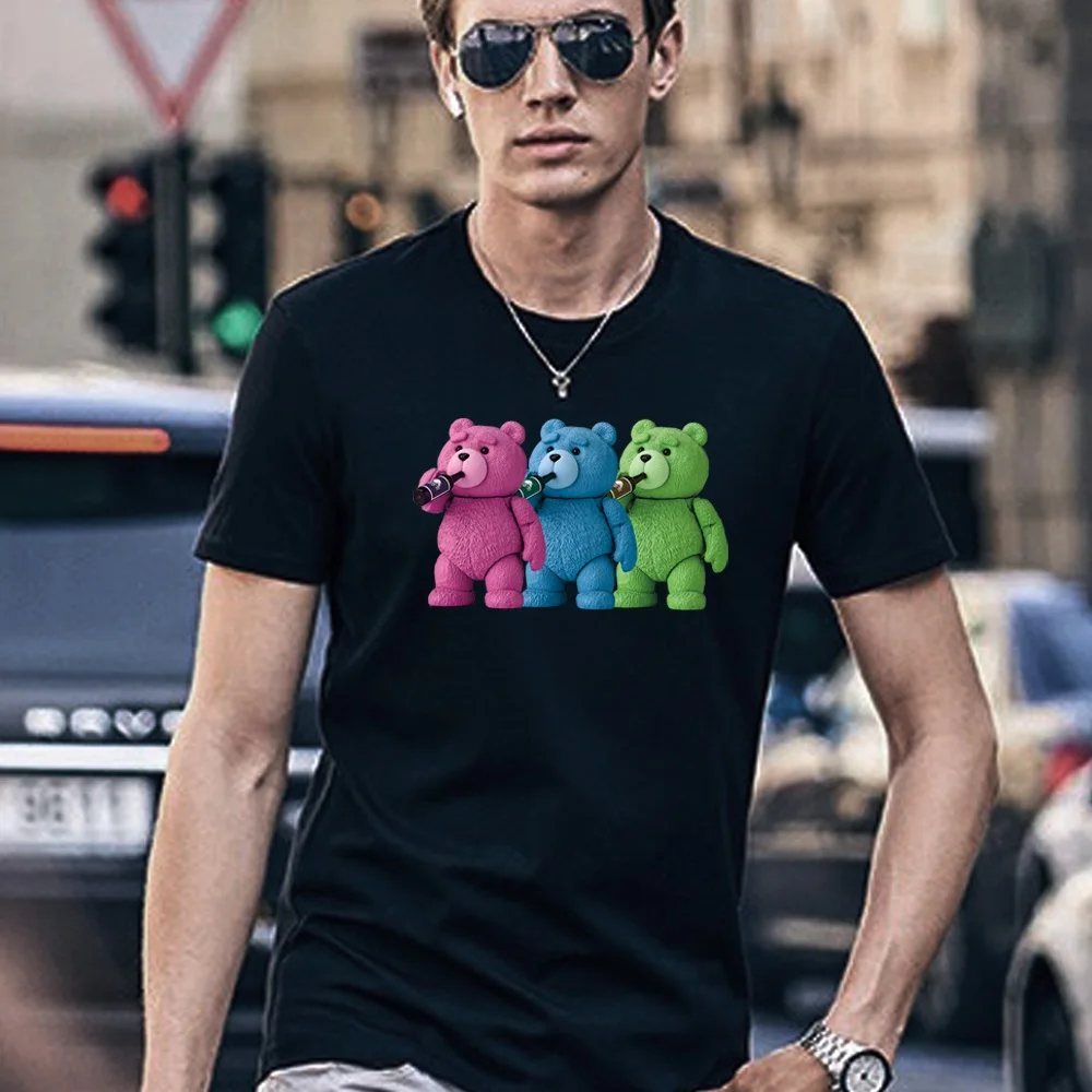 2023 Summer Fashion O Neck T-shirt Bear Printed Harajuku Men Clothing Blouses Short Sleeve Casual Tees Male Clothes Tops T Shirt