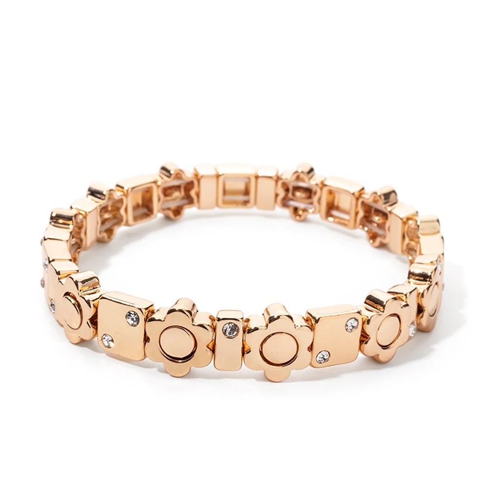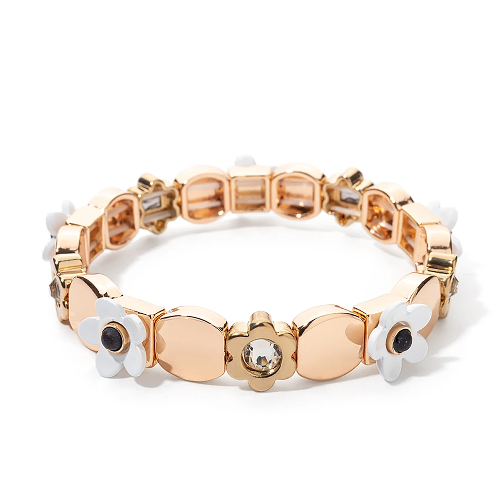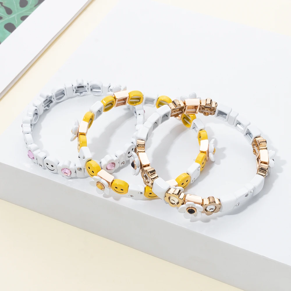 [Product Name] Paved Diamond Flower Shape Simley Inscription Bracelets