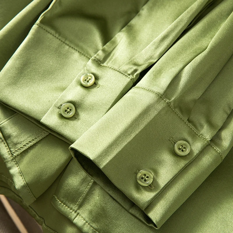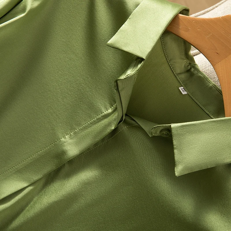 2023 Women’s Fashion Top Temperament Heavyweight Silk Elastic Satin Solid Color Long Sleeve Office Commuter Shirts Free Shipping