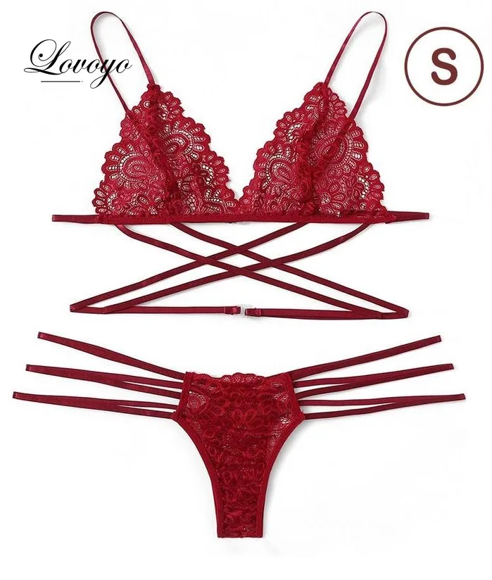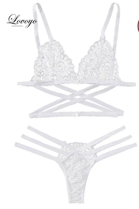 2024 Lace Women Sexy Bra Set Polyester Bandage Push Up Underwear Set Beauty Back Bra Erotic Thongs Costume Intimates Lingerie