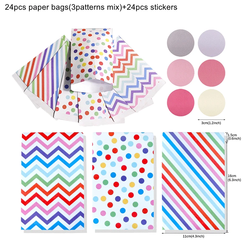 24Sets Rainbow Paper Bags Chevron Dot Stripe Party Favor Bags with Stickers