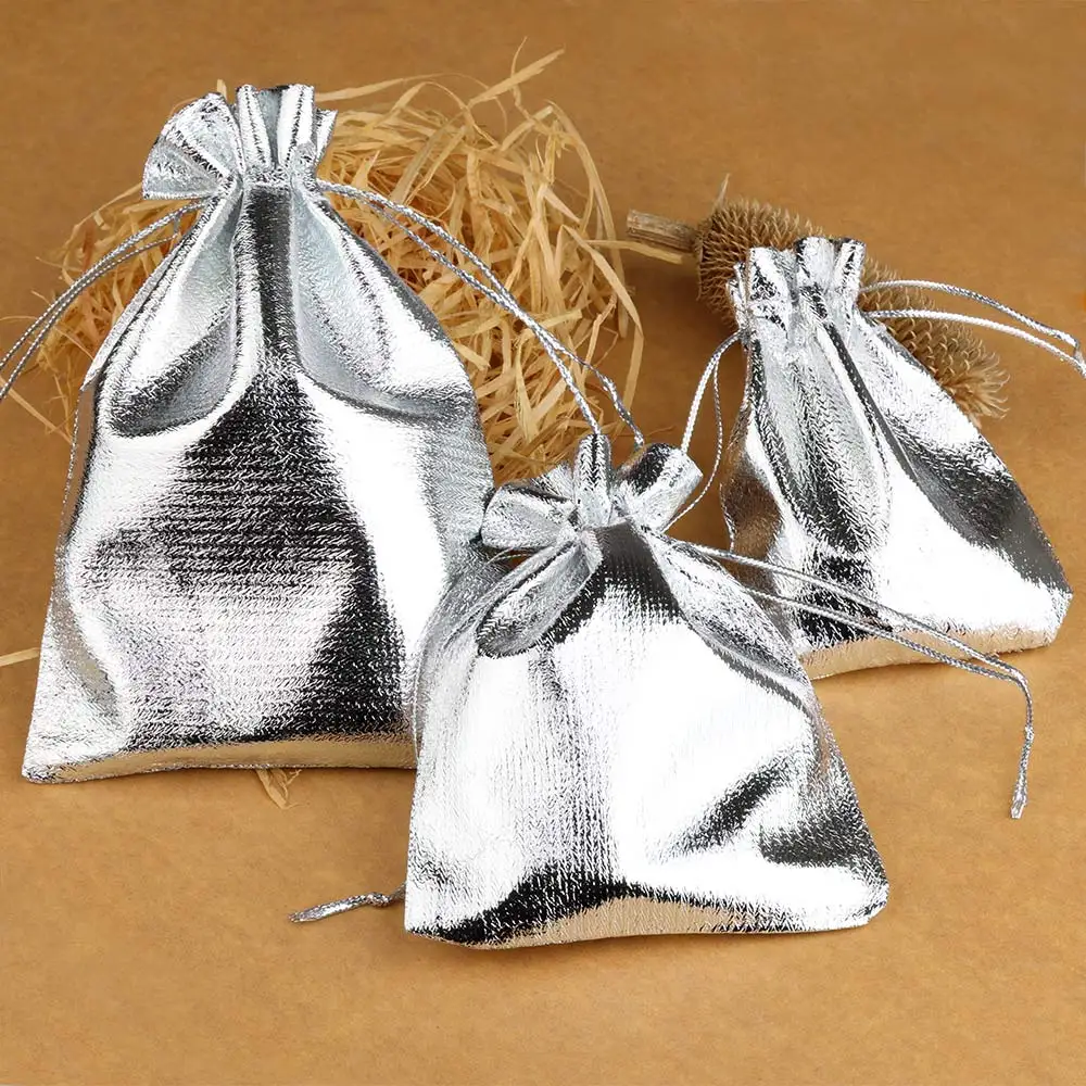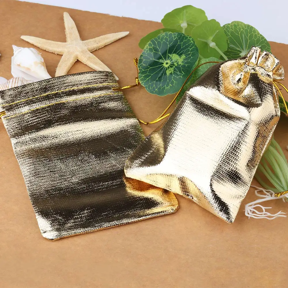 25pcs 7×9/9×12/10x15cm Fabric Packing Gift Bags Gold Color Jewelry Packaging Bag Wedding Party Present Drawstring Pouch