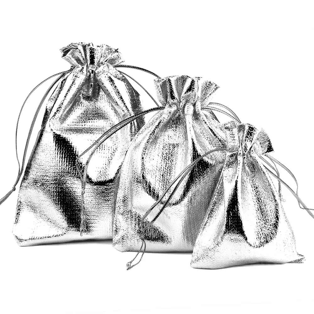 Name:25pcs 7×9/9×12/10x15cm Fabric Packing Gift Bags Gold Color Jewelry Packaging Bag Wedding Party Present Drawstring Pouch