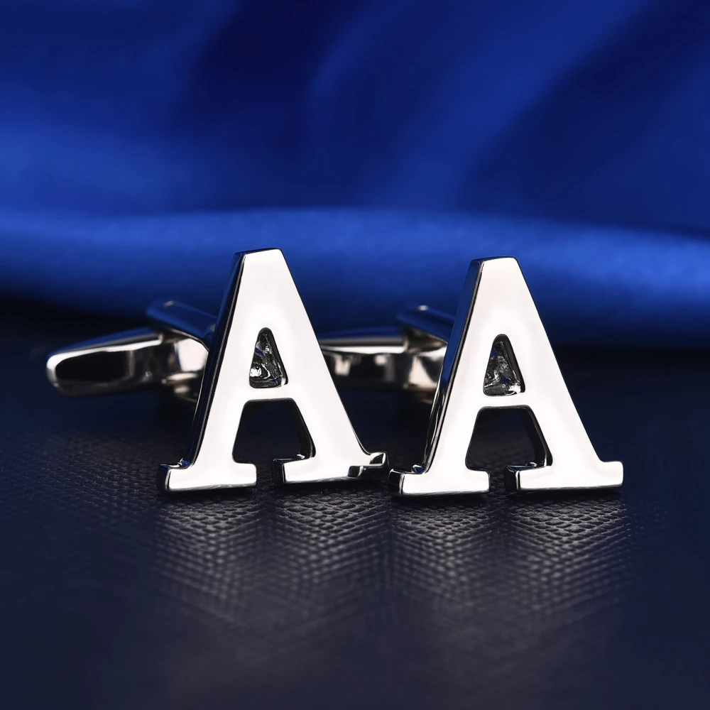 26 Letters A-Z High Quality Brass Silver Color Cufflinks Men’S French Shirt Cuff Links Male Gemelos Bouton Manchette Men Gifts