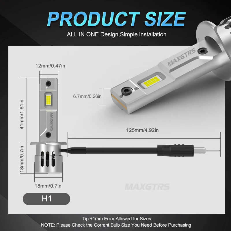 MAXGTRS 2Pcs Canbus H1 LED Headlight with Fan 55W 20000LM 16-CSP CHIP Car Bulb Plug and Play Turbo H1 360 Mini 6500K Highbeam 12V