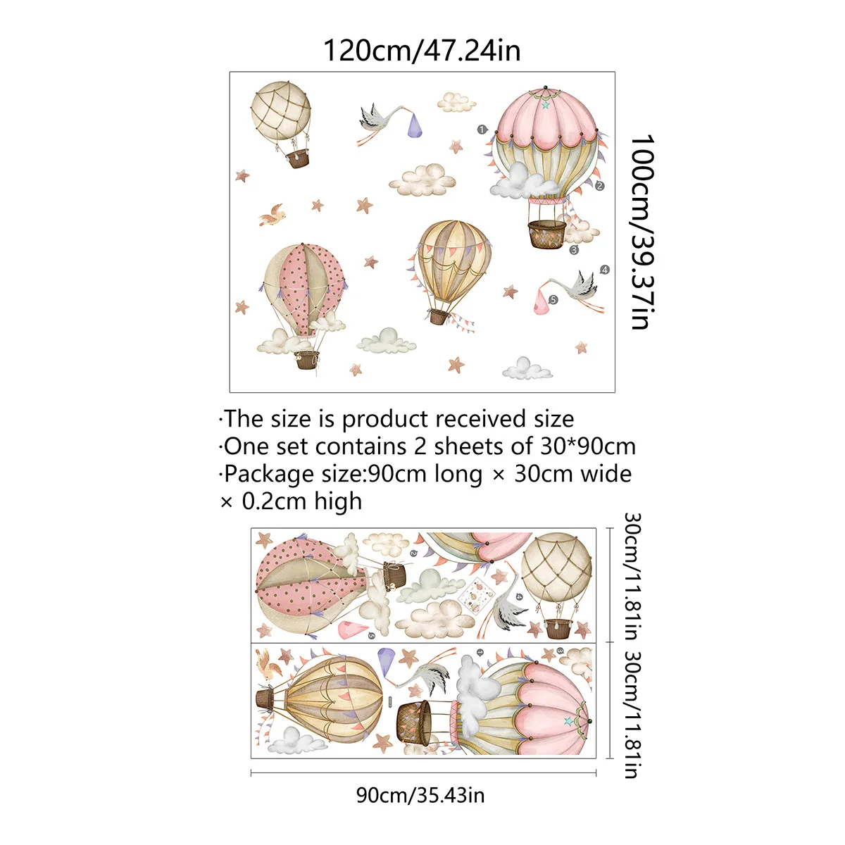 2pcs Cartoon Hot Air Balloon Clouds Wall Stickers Living Room Girl Background Bedroom Decorative Wall Sticker Wallpaper Ms6304
