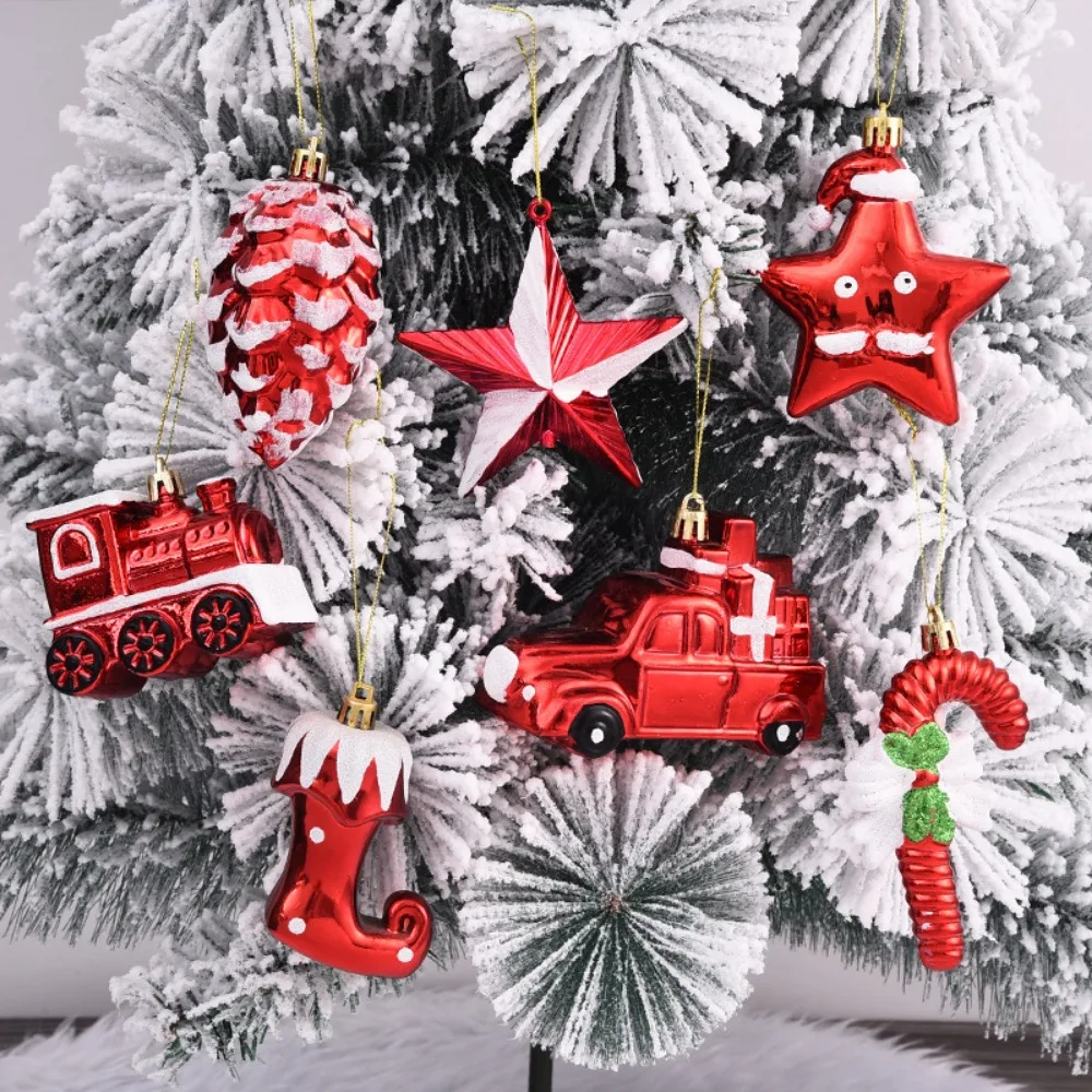 2PCS Christmas Tree Decorations Plastic Christmas Ball Red Ornaments Small Pendant Tree Hanging Xmas Party Decor for Home