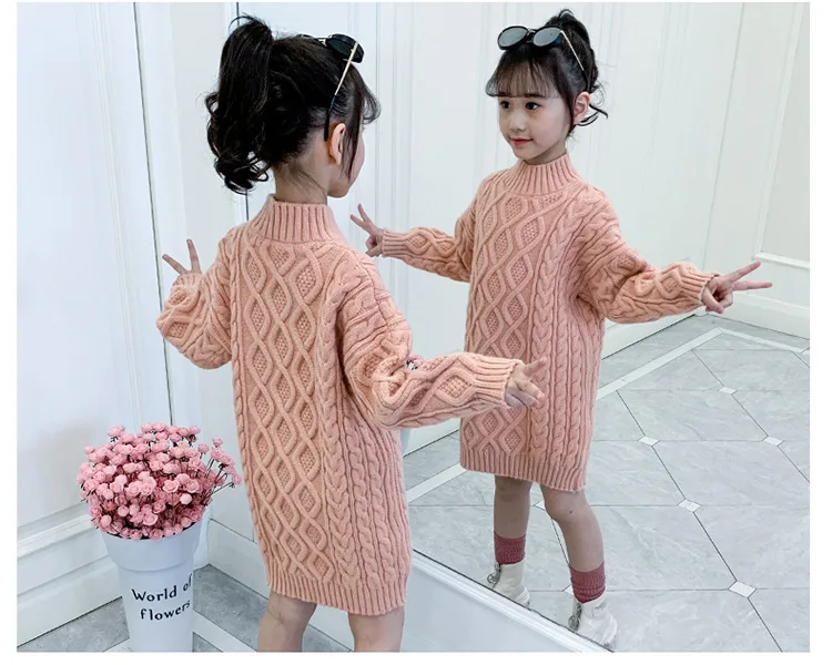 3-13 Years Teen Girls Knitted Sweater 2023 New Fashion Korean Style Long Sweaters For Girls Autumn Winter Wool Children Clothing