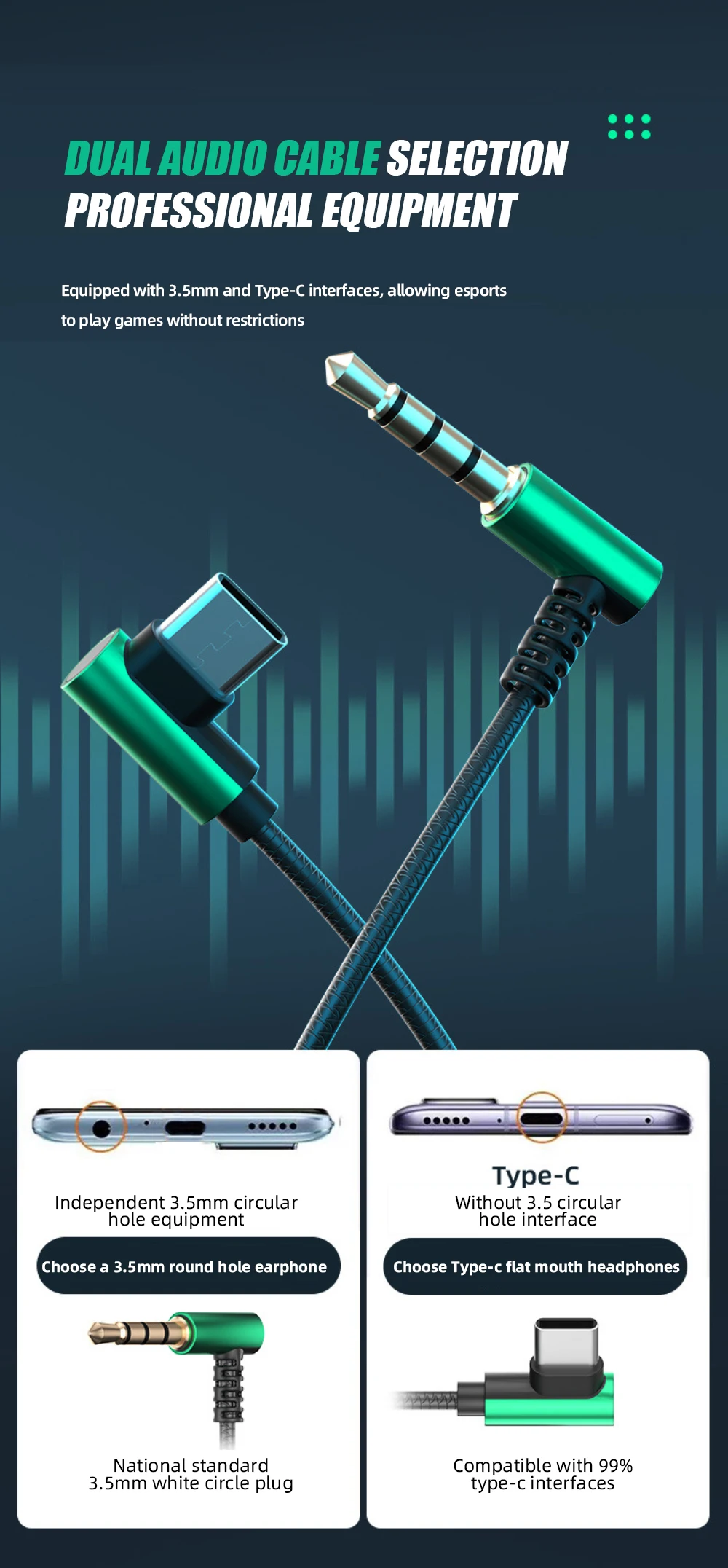 1. Dual audio selection of professional equipment, equipped with 3.5mm and Type-C mm interfaces, so that electronic competition can play games without restriction.