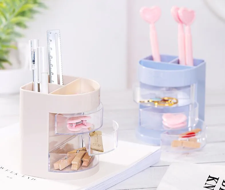 3 grid Pen stand Holder Desk Organizer Stationery Round Pencil Holder Organizer Storage Container School Supplies Accessories