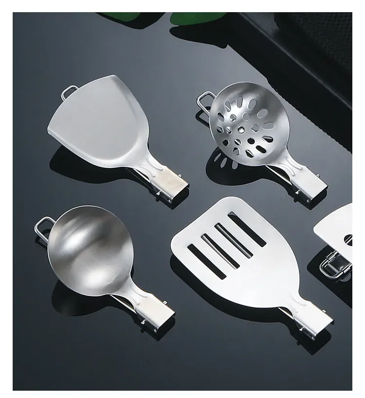 304 stainless steel portable kitchenware for outdoor picnics camping stir frying spatula pot folding tableware outdoor camping