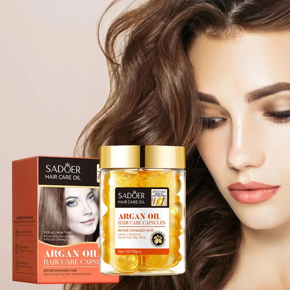 30pcs Argan Oil Hair Care Capsules Lock Im Moisture Serum For Damaged Frizzy Hair Hydrating Frizz Ease Silky Shiny Hair Essence
