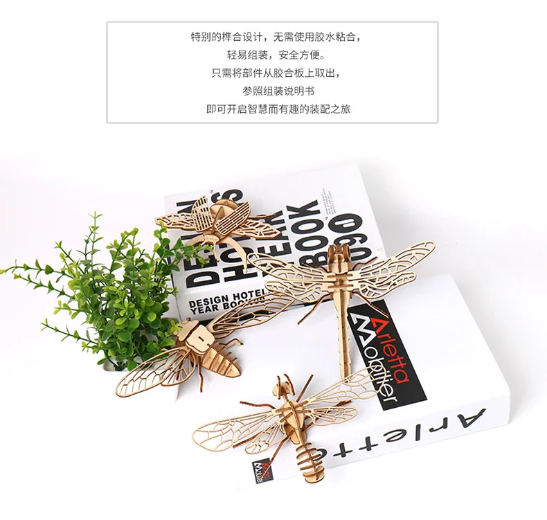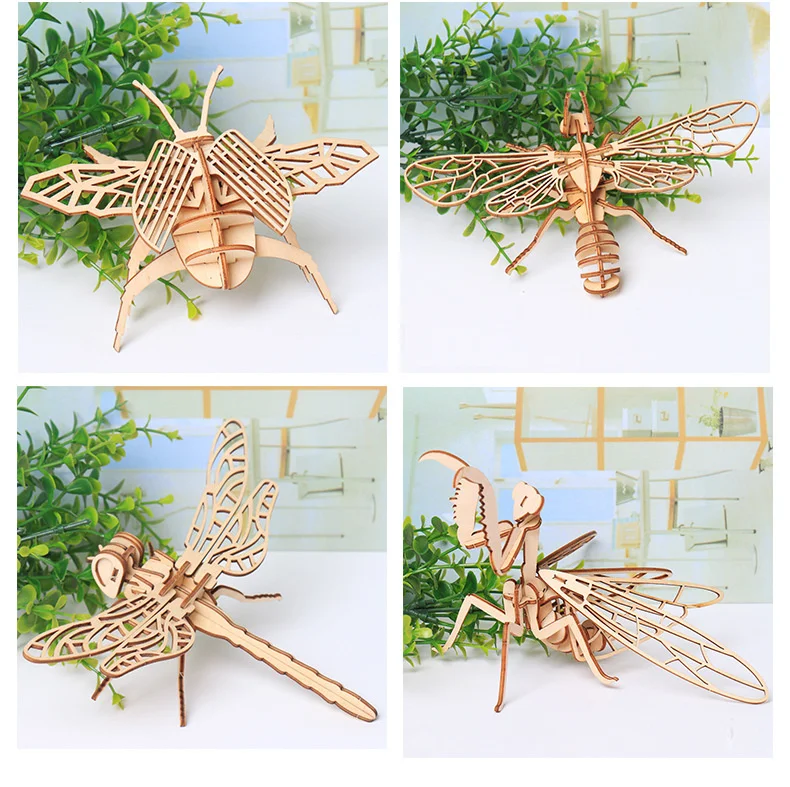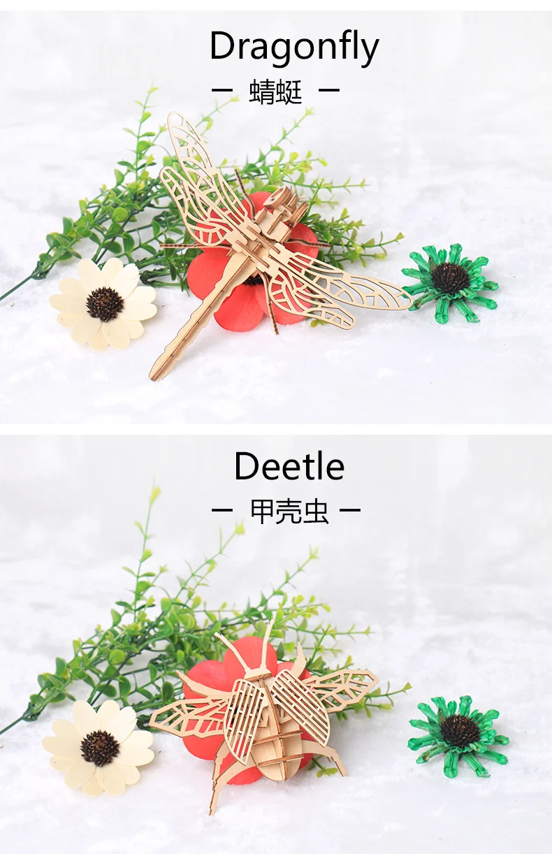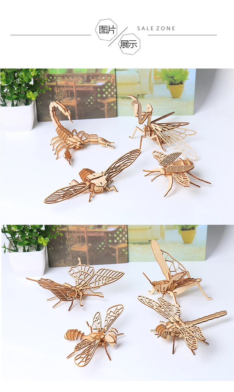 3D Insect Animal Wooden Three-dimensional Puzzle DIY Assemble Woodcarving Model Manual Children Adult Toys Gift Home Decorations