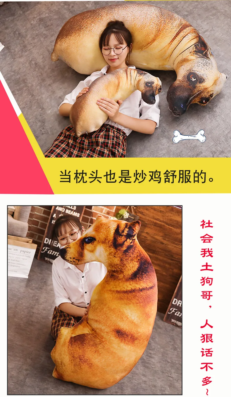 3D Lifelike Animal Cute Bend Dog Printed Throw Pillow Funny Dog Head Cosplay Children Favorite Toy Cushion for Home