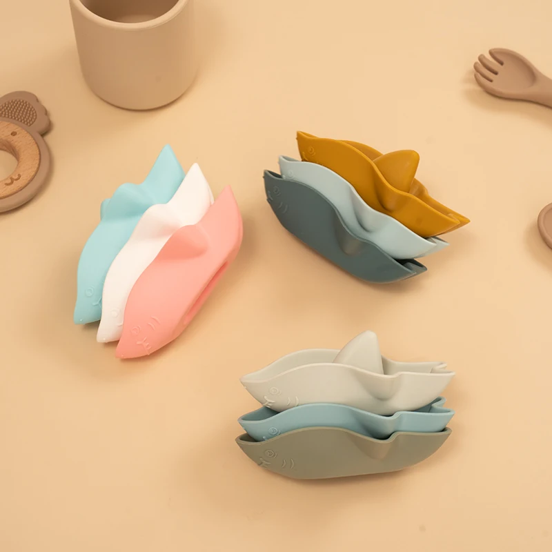 3pcs/Set Baby Silicone Bath Toys BPA Free Water Play Cute Shark Mold Infant Beach Toy Cartoon Sea Animal Bathing Toy for Toddler