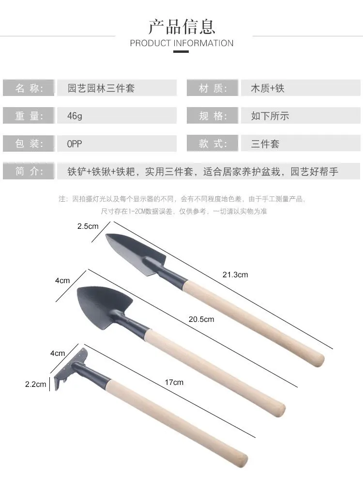 3pcs Set Mini Gardening Potting Tools Wooden Handle Shovel Rake Shovel Multifunctional Household Plant Bonsai Tools