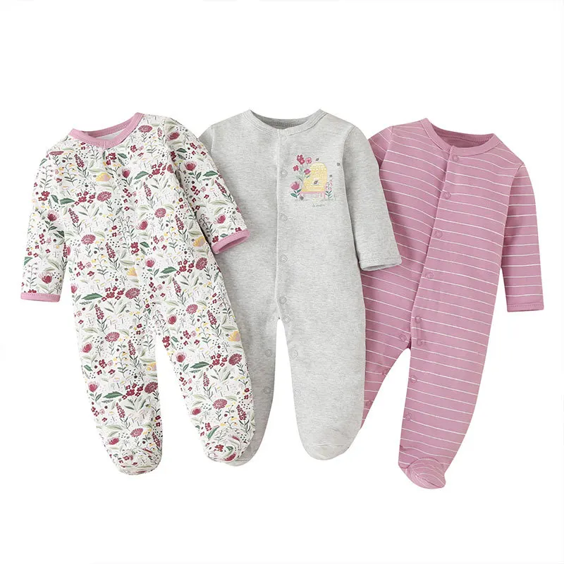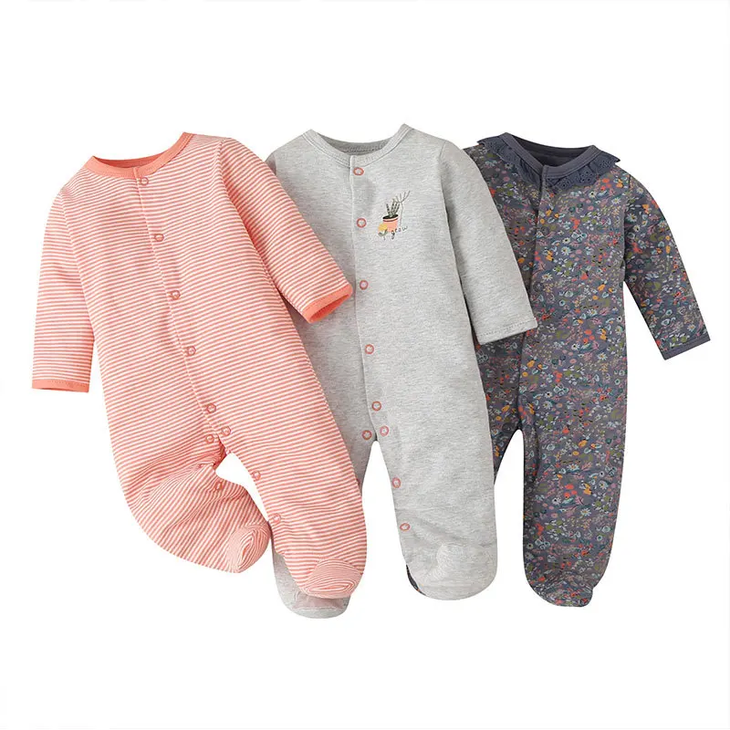 3Piece Spring Fall Baby Clothing Infant Girl Boy Clothes Cartoon Cute Print Long Sleeve Cotton Jumpsuit Toddler Romper BC1486