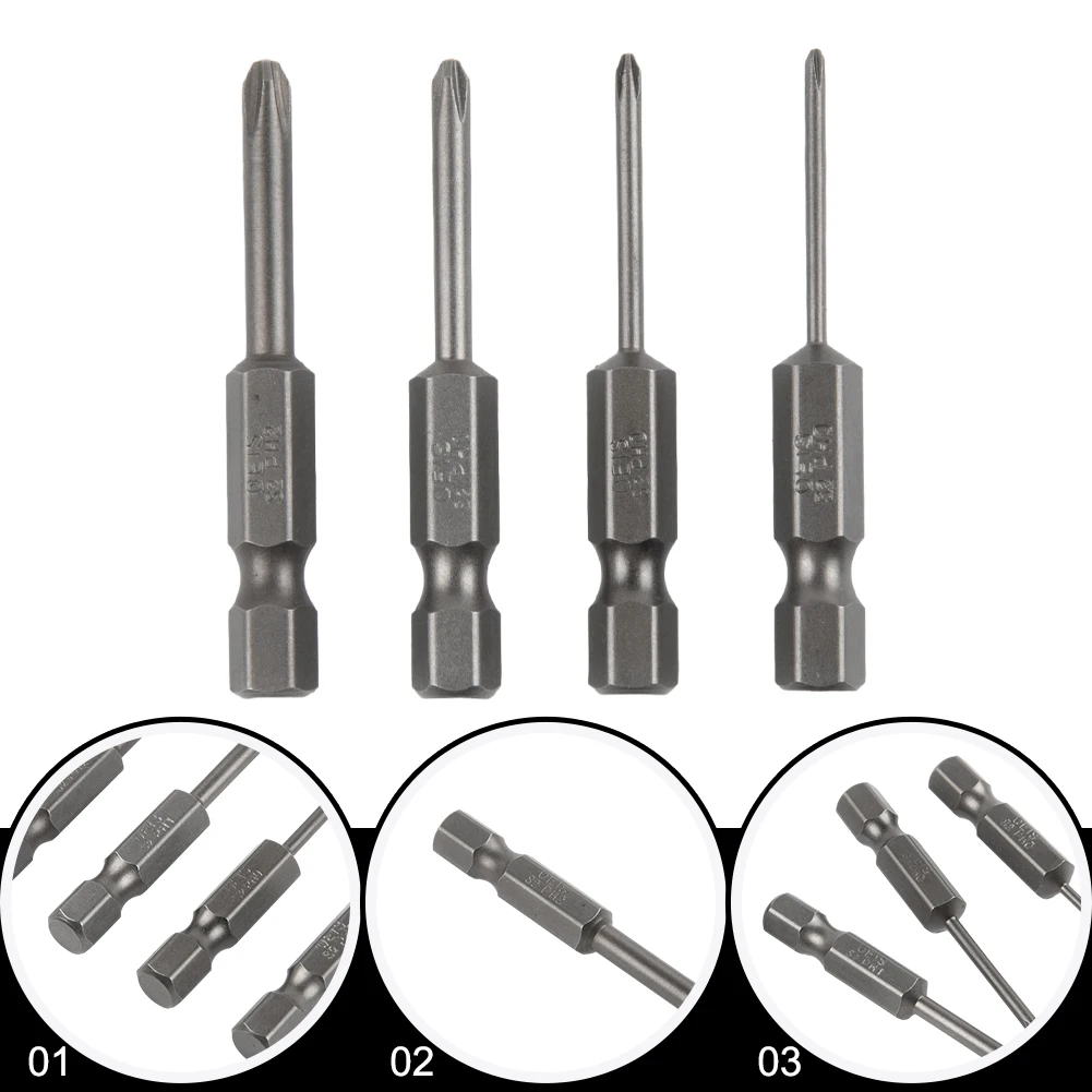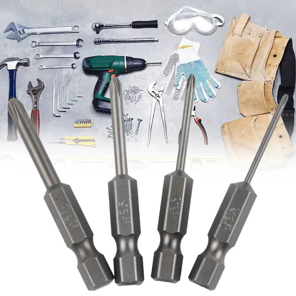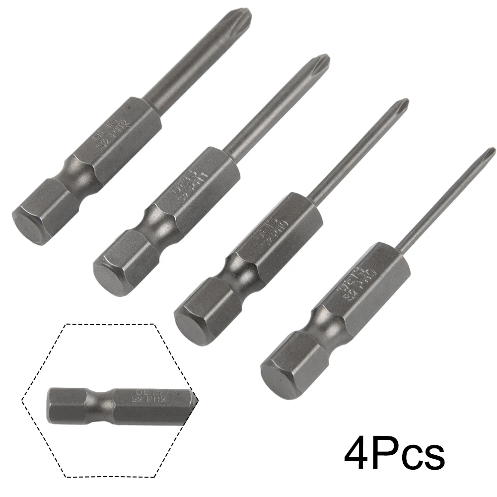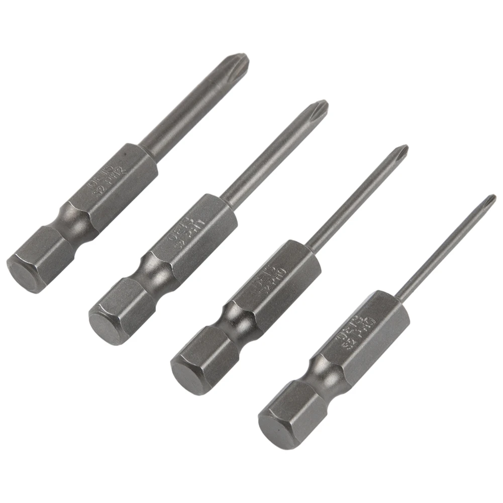 4pcs 50mm Cross Screwdriver Bits 1/4Inch Hex Shank Electric Screwdriver Bit Alloy Steel Magnetic Screw Drive Hand Tools PH00 PH1