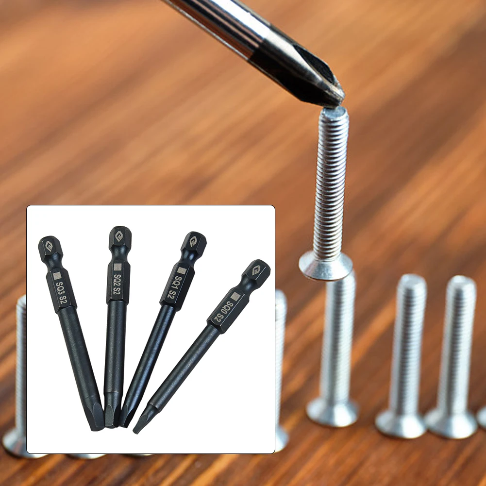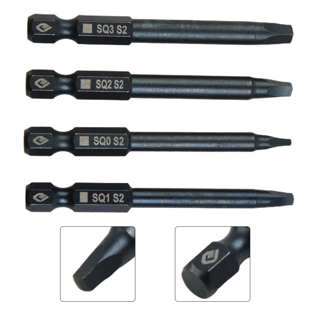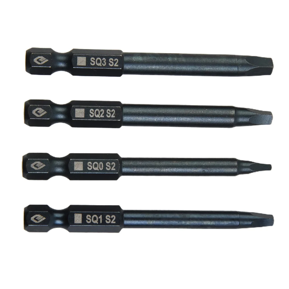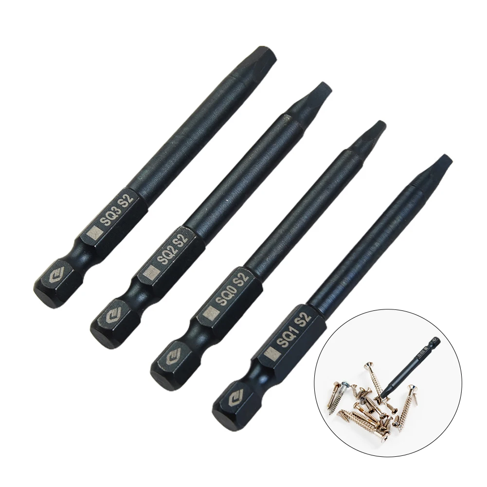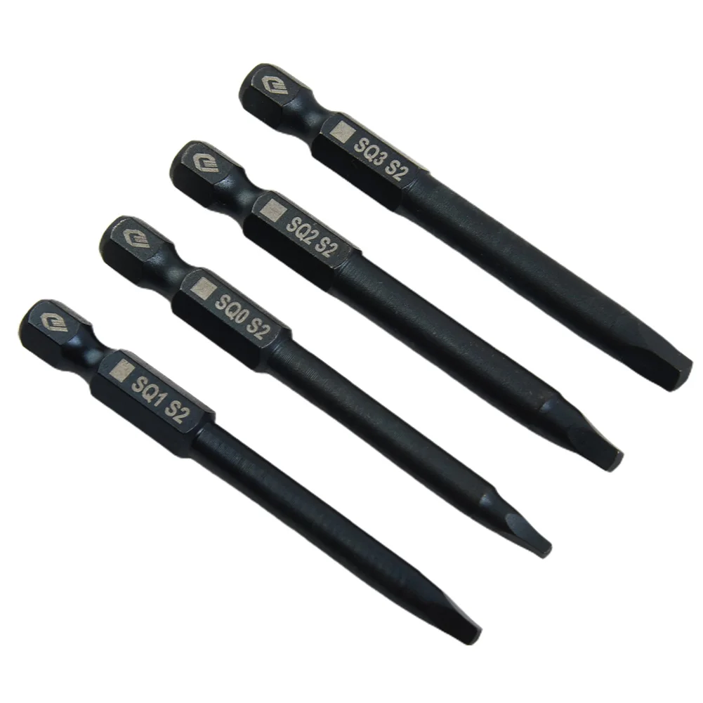 4pcs 65mm SQ0 SQ1 SQ2 Square Head Screwdriver Bits Set 1/4Inch Shank Magnetic Screw Driver Electric Screwdriver Bits Hand Tool