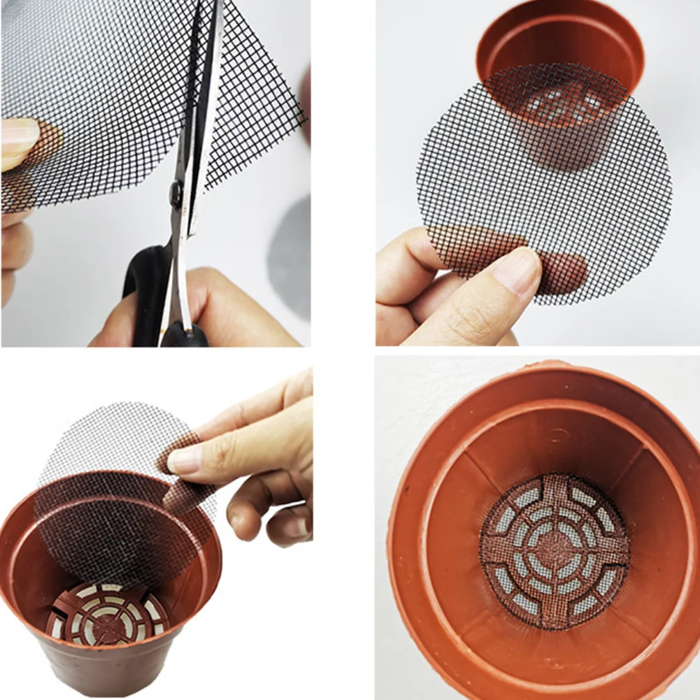 50 PCS Flowerpot Hole Mesh Mats Breathable Bonsai Basin Bottom Grid Pad Multi-function Plant Drainage Gasket Gardening Accessory