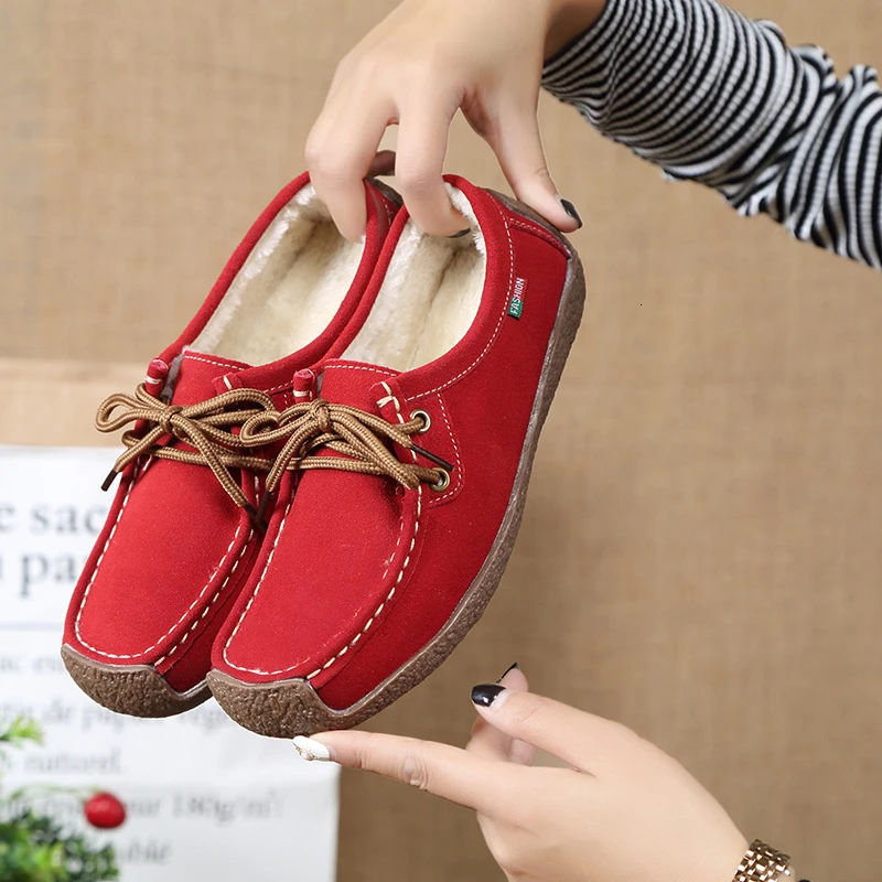 6 Colors Genuine Leather Women Slip On Flat Shoes Casual Loafers Nubuck Cow Suede Sneakers Ladies Shallow Footwear Plush Warm