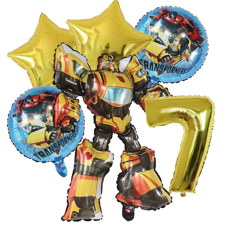 6Pcs Transform Foil Balloons Bee Birthday Theme Party Decoration Baby Shower Supplies Boy Kids Cars Robot Kids Toys Air Globos